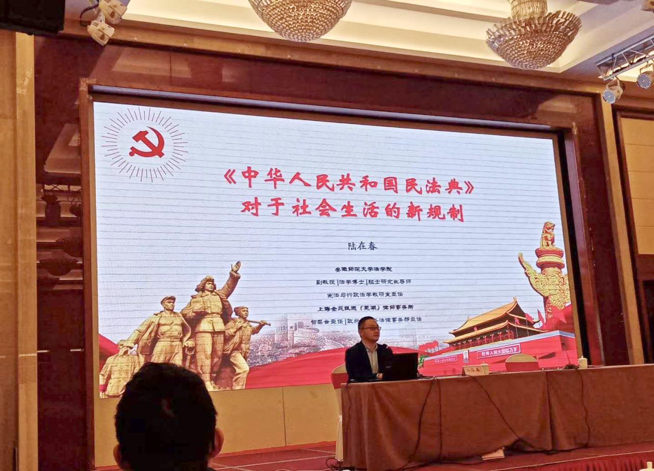 《中华人民共和国民法典》是新中国成立以来第一部以“法典”命名的法律,是一部固根本、稳预期、利长远的基础性法律。陆在春对民法典的重大意义、编纂历程进行介绍,按照总则、物权、合同、人格权、婚姻家庭、继承和侵权责任编章顺序针对相关新规亮点进行案例展示和法理讲解。讲座融学术性、实操性于一体,旁征博引,案例详实、分析透彻,使得与会人员深化了对民法典新规的认识和理解,提高了大家的理论水平和法治素养。
