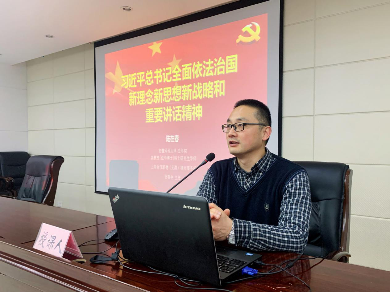 为深入贯彻习近平总书记全面依法治国新理念新思想新战略,学习贯彻习近平新时代中国特色社会主义思想,12月11日上午,安徽师范大学法学院副教授、上海金茂凯德(芜湖)律师事务所管委会主任、市住建局法律顾问陆在春受邀为芜湖市住房与城乡建设局做“习近平总书记全面依法治国新理念新思想新战略和重要讲话精神”专题培训讲座。