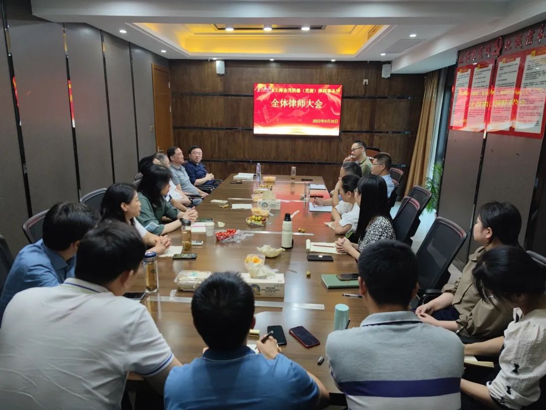 9月30日,上海金茂凯德(芜湖)律师事务所开展全体律师大会,本次会议由管委会主任陆在春主持,全体律师、实习律师和行政人员参会。