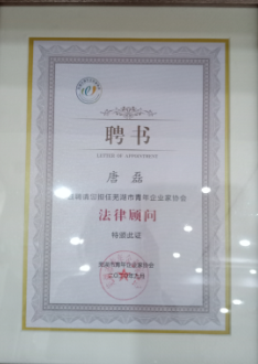 我所主任吴俊洋律师受聘担任芜湖市镜湖区